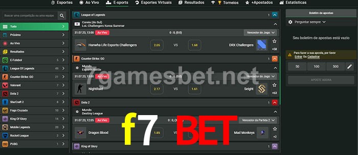 O f7 bet oferece uma grande seleção de opções de apostas em e-sports com probabilidades competitivas